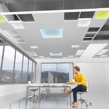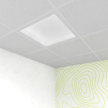 Bounce AE is a low glare recessed ambient lighting solution that brings softness and visual comfort to the modern workspace, letting your eyes rest so you can be comfortable and productive. Bounce AE is also the designer’s delight offering the ability to select the top reflector material. For the lowest cost and most practical version select a standard acoustical ceiling tile. If your choice is to get wild and creative…. Then you can pretty much select any material under the sun and turn the ceiling into an expression of light, color and texture.