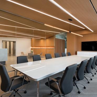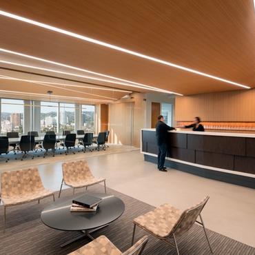 Milstein Adelman's office lobby creates an open, more creative environment that reflects a shift from the typical formal attorney office. Nulite's Regolo 4 is featured throughout the reception area, leading visitors seamlessly between the entryway and workspaces.