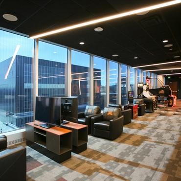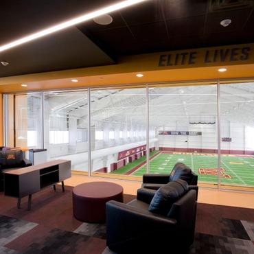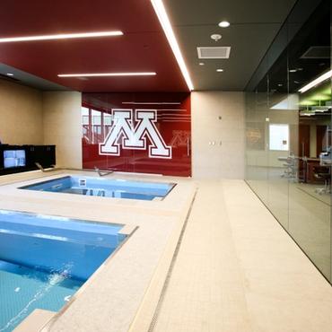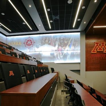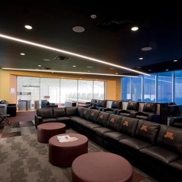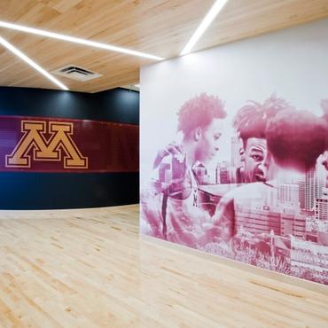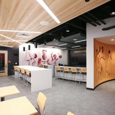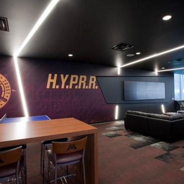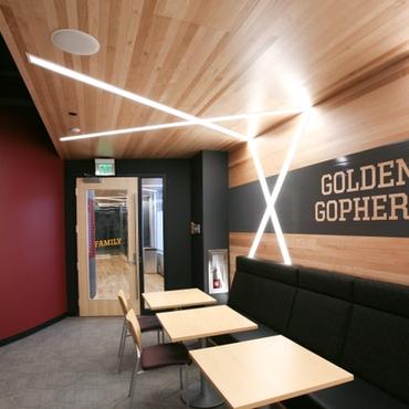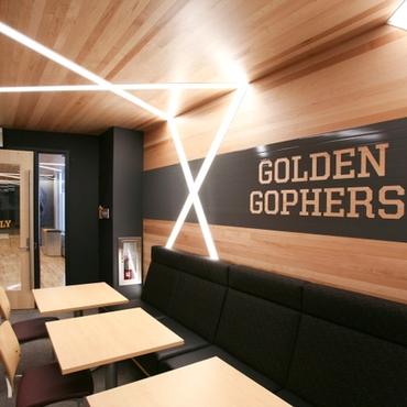 The University of Minnesota's Athletes village is an impressive 338,000 square foot facility designed to support the activities and lifestyle of approximately 750 student-athletes. Nulite's Regolo series has been featured extensively throughout the facility in many eye catching criss-cross linear lighting patterns.